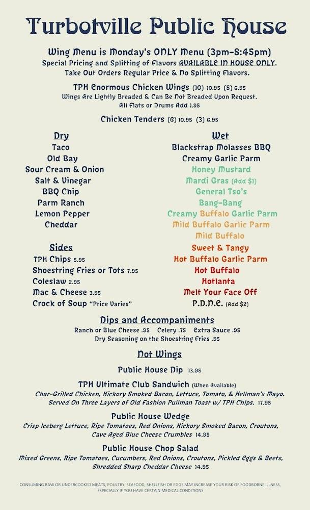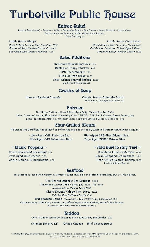 Welcome to Turbotville Public House, your go-to destination for a revitalizing dining experience in a beautifully clean environment. Located at 305 Main St, Turbotville, PA, TPH offers a unique blend of New American cuisine featuring the freshest ingredients and housemade flavors. Enjoy private indoor and outdoor seating while savoring cold libations, classic vinyl tunes, and real food that warms the heart. From excellent cocktails to a great selection of beers, we cater to all tastes with a vibrant atmosphere perfect for lunch, dinner, or solo dining. Experience fast service and local specialties at TPH today!